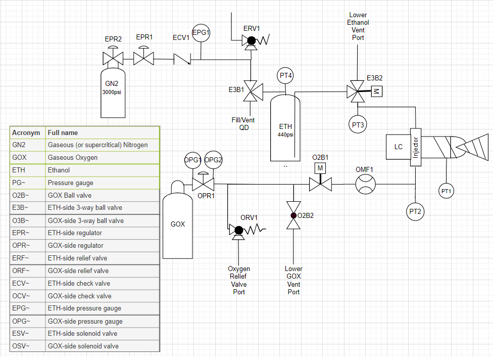 <figure><img src="https://2333413738-files.gitbook.io/~/files/v0/b/gitbook-x-prod.appspot.com/o/spaces%2F-LB423_rlWTQK_KuQzK5%2Fuploads%2FWG5siV59XGqB0uqhDdaB%2Fphysicalsystem1.png?alt=media&#x26;token=32372253-fc99-4a45-9570-74882554e1d2" alt=""><figcaption><p>Cross-sectional view of the ELLIE thrust chamber, injector, and load cells</p></figcaption></figure>